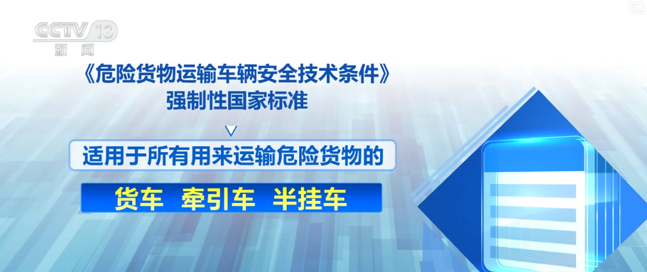 据了解,这项新国标还有一个特点是更加国际化。具体的技术方面的要求全面对接《危险货物国际道路运输协定》以及联合国相关法规,为中国危险货物运输车辆“开出国门”扫除技术障碍。