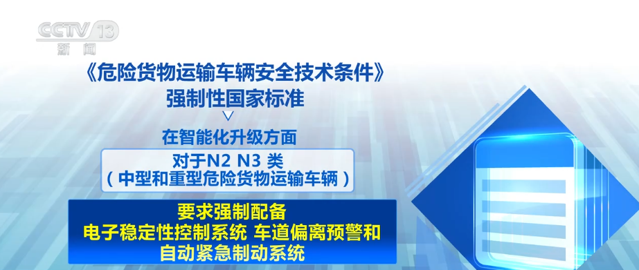 记者近日从国家标准委了解到,新版《危险货物运输车辆安全技术条件》强制性国标将于2026年7月1日施行。从外观视觉标识到智能装备全面升级,有效预防和最大程度减轻事故危害。